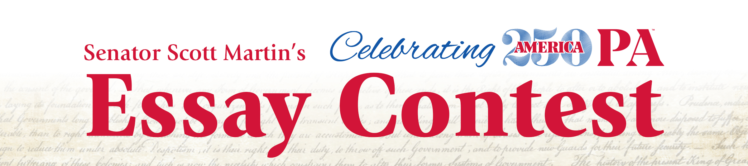 Prize: Overall winner gets to represent the 13th Senatorial District in the Pennsylvania Senate’s Ceremonial Celebration to be held in Philadelphia in honor of the 250th Anniversary of the United States on May 5, 2026. A parent or guardian is required to attend with the student, and a travel stipend will be provided to offset transportation costs.